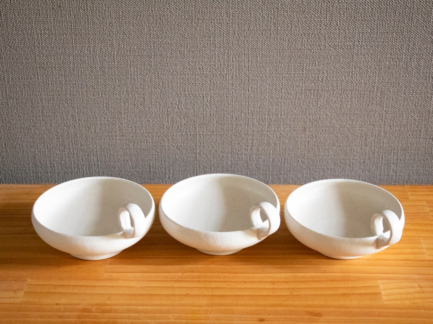 磁器と間違われることもありますが陶器の器でして、上野焼の薄作りの技術と、化粧品などにも使用される白色粘土のカオリンを配合した釉薬によって作られております。