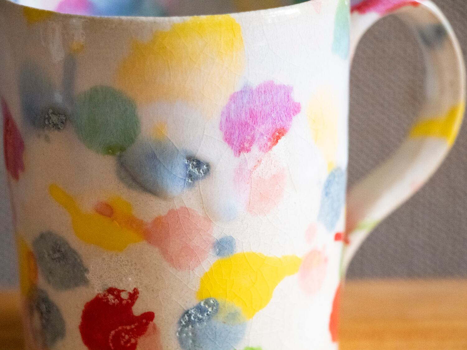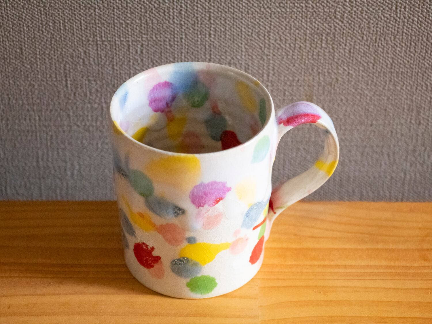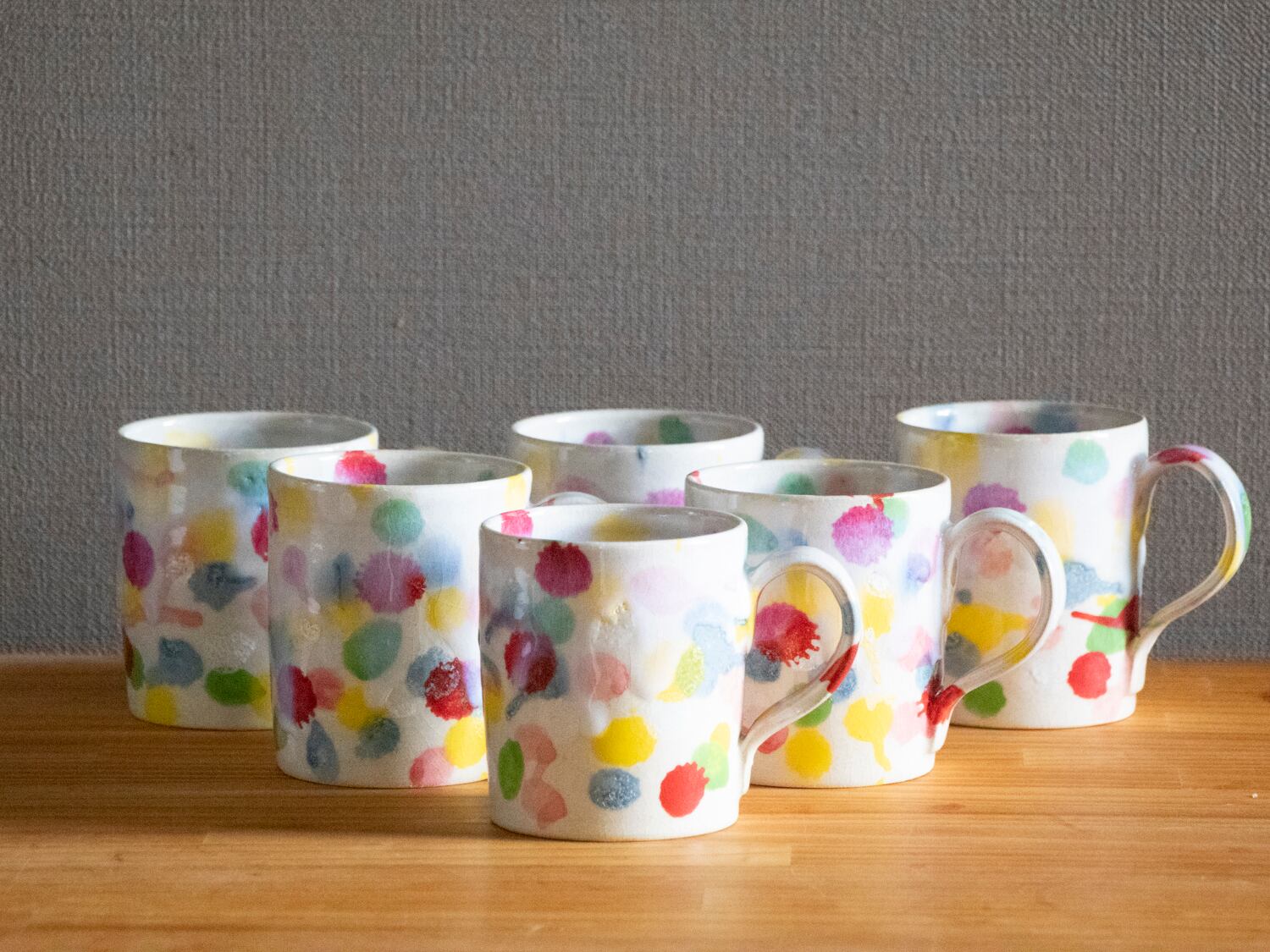 ワークマグは作業台やデスクの上で邪魔にならず、倒れにくいがコンセプトのマグカップで、彩りは顔料を用いてカラフルな色合いを作るシリーズです。