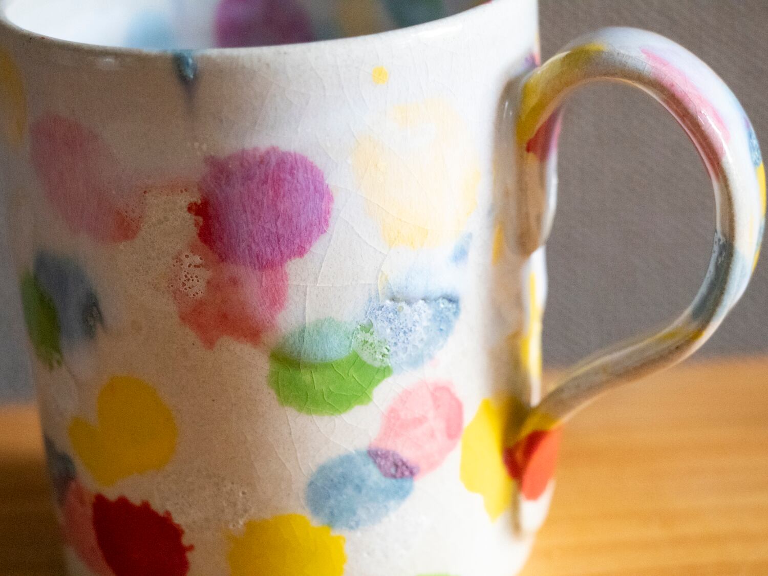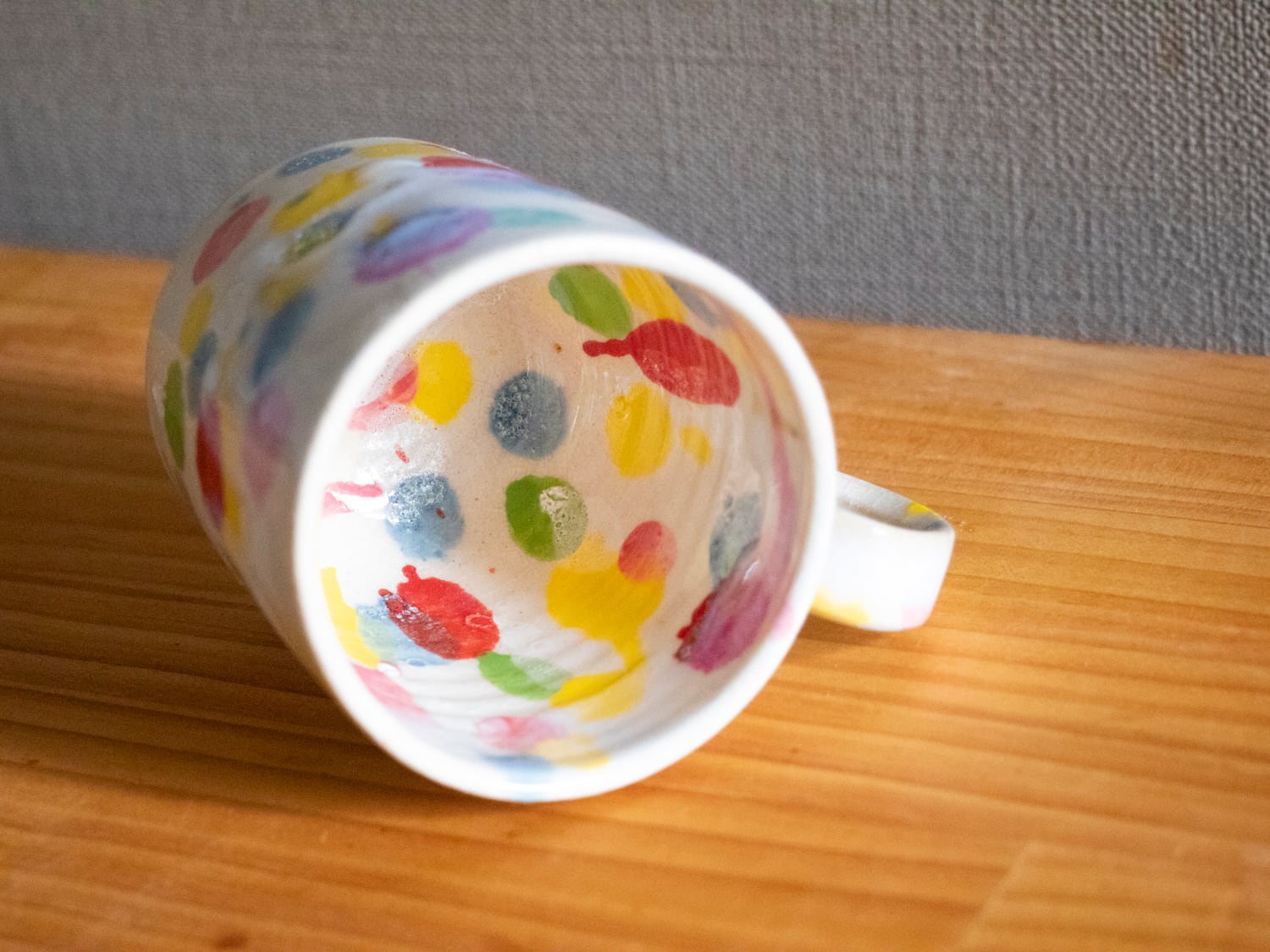 ワークマグは作業台やデスクの上で邪魔にならず、倒れにくいがコンセプトのマグカップで、彩りは顔料を用いてカラフルな色合いを作るシリーズです。