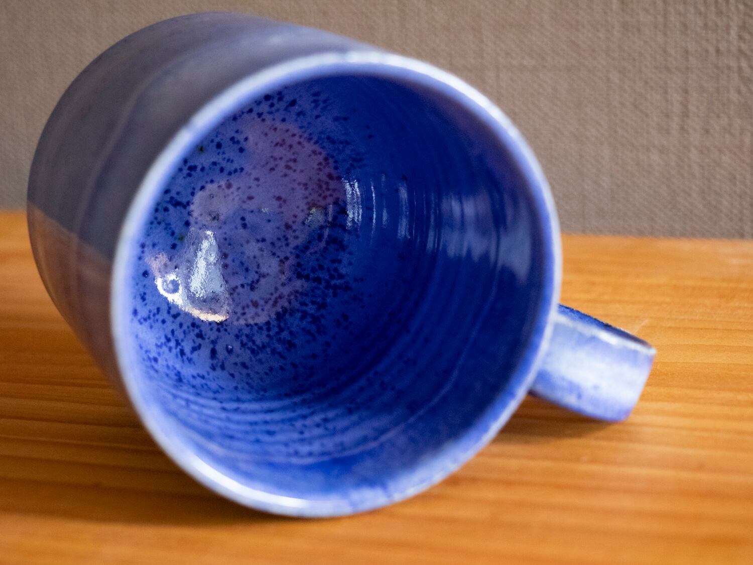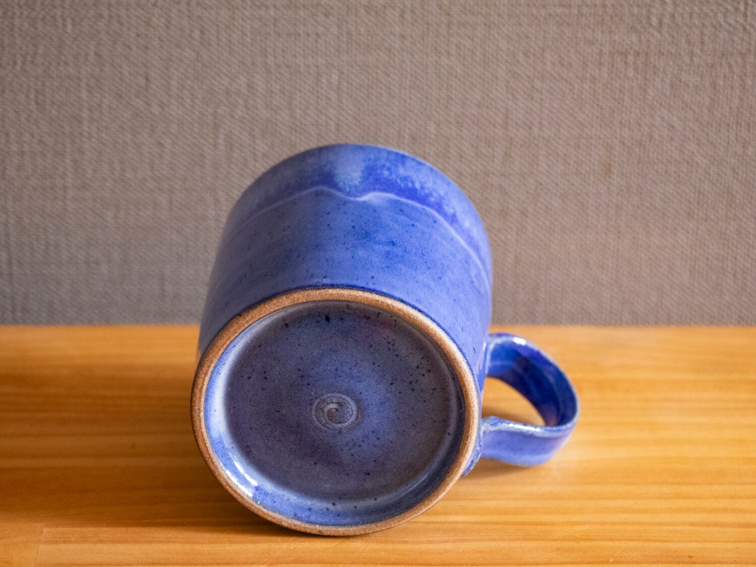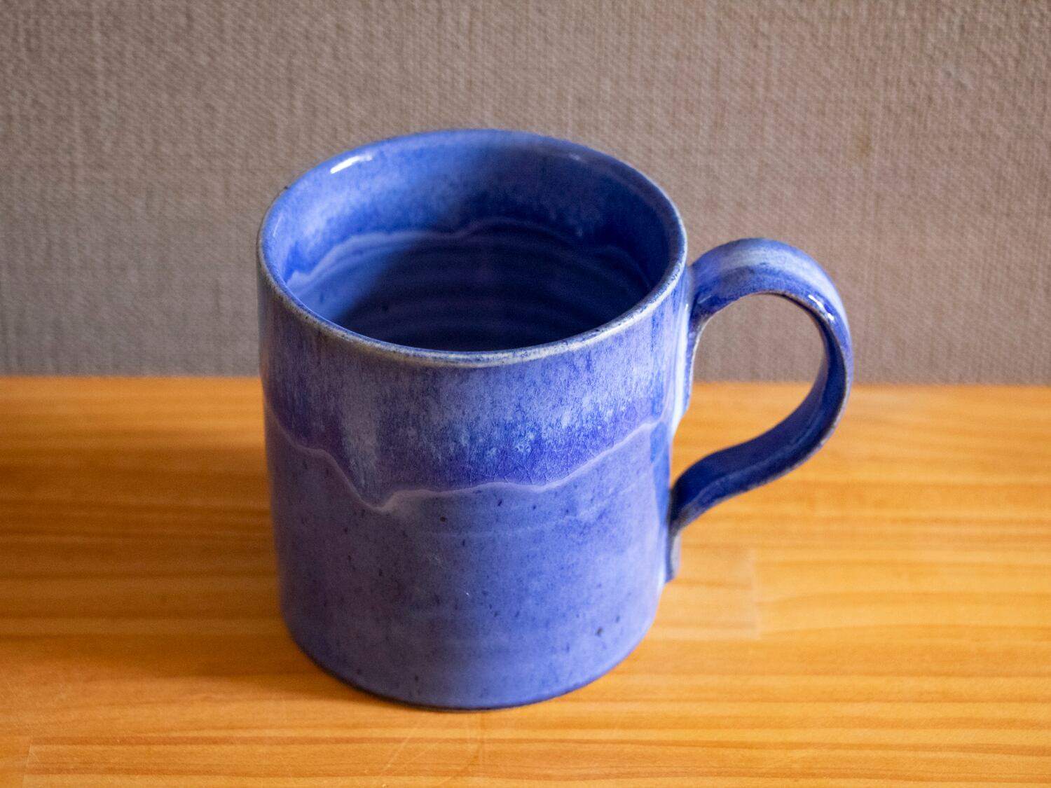 ワークマグは作業台やデスクの上で邪魔にならず、倒れにくいがコンセプトのマグカップで、みそらは鮮やかな空色が特徴的な釉薬ですね。