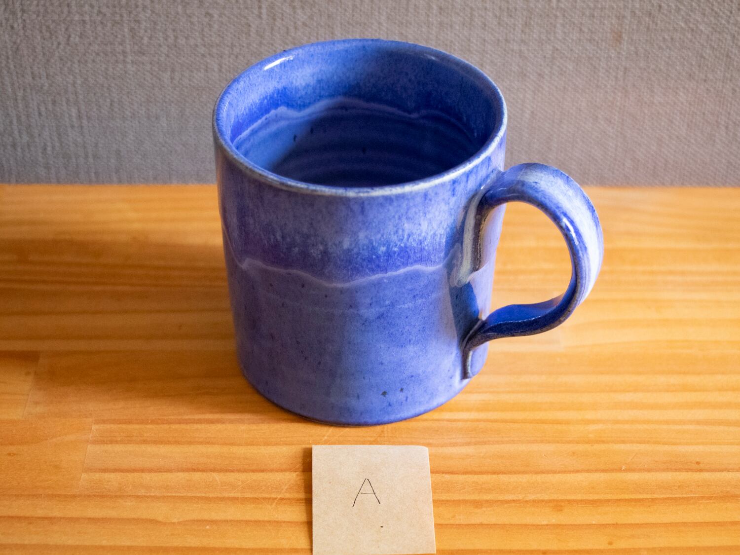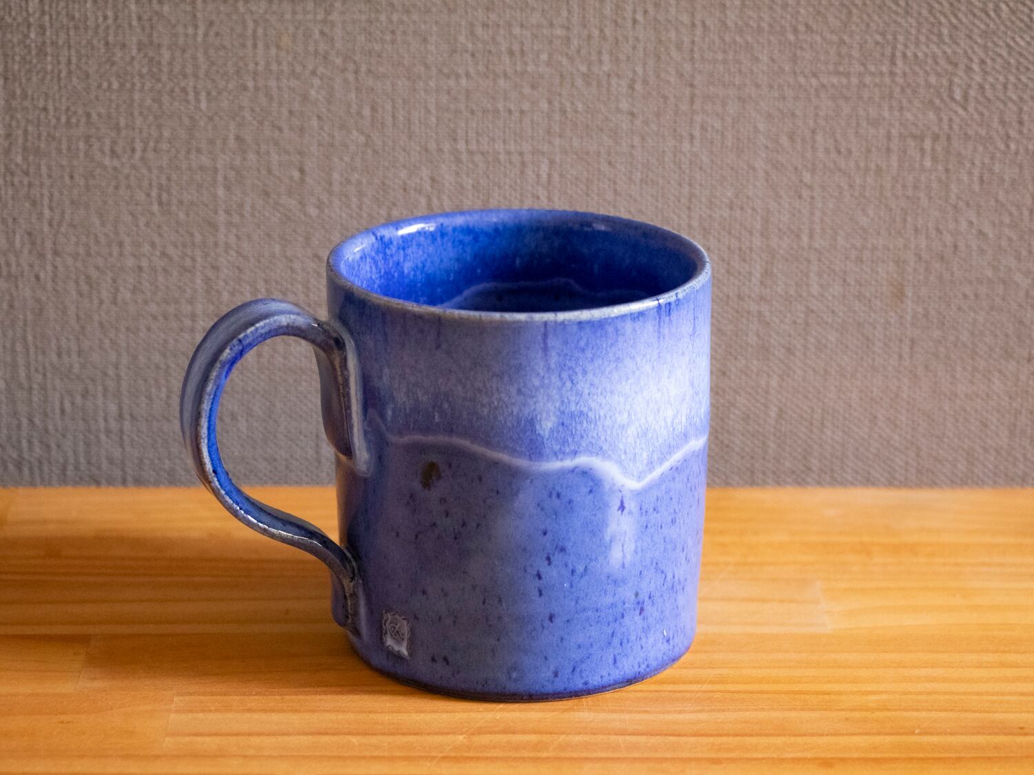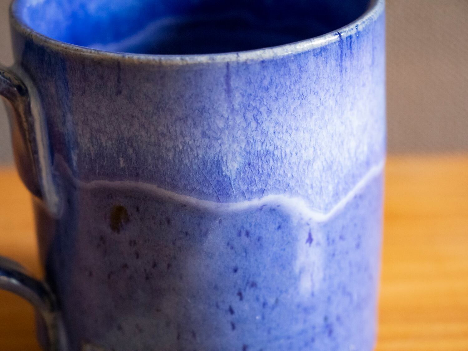 ワークマグは作業台やデスクの上で邪魔にならず、倒れにくいがコンセプトのマグカップで、みそらは鮮やかな空色が特徴的な釉薬ですね。