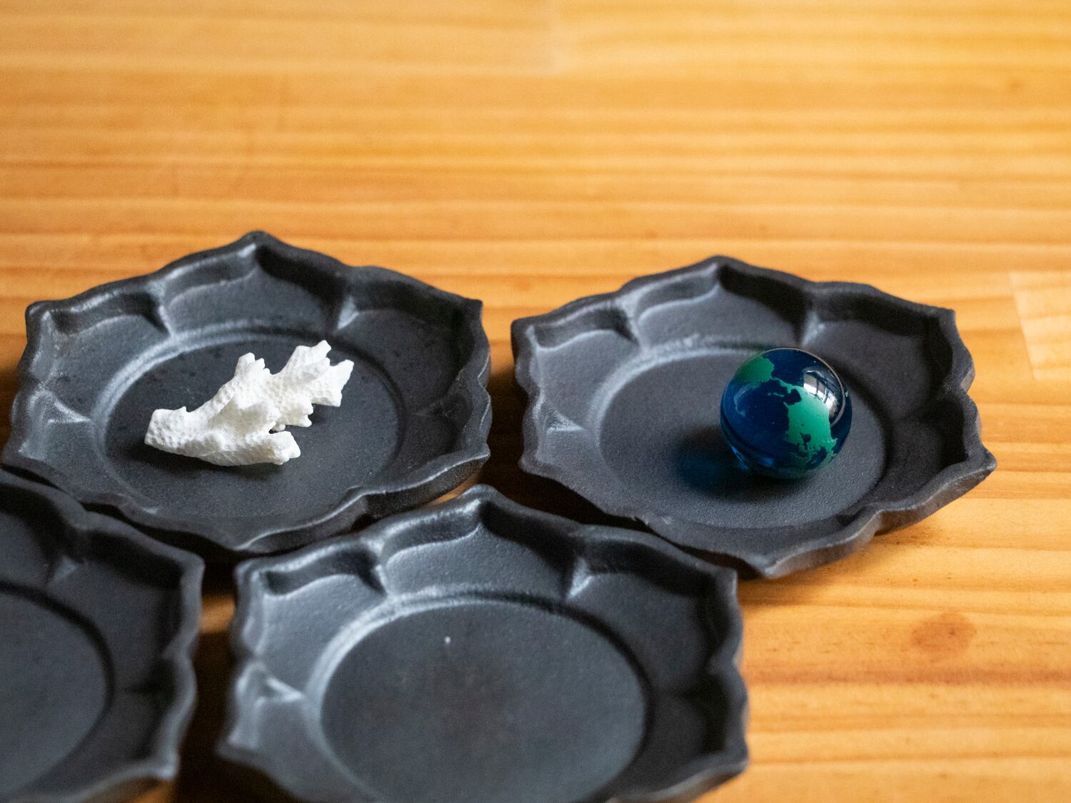 サイズ感はお醤油とかにちょうどいいくらいの小皿って感じですね。またはスプーン置きだったり、食卓以外ではアクセサリー置きなどにお使いいただくことも多いみたいです。