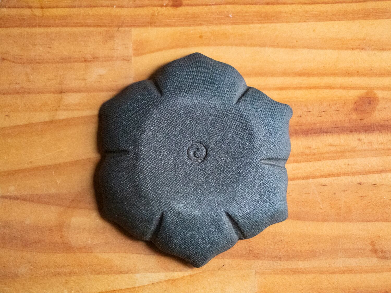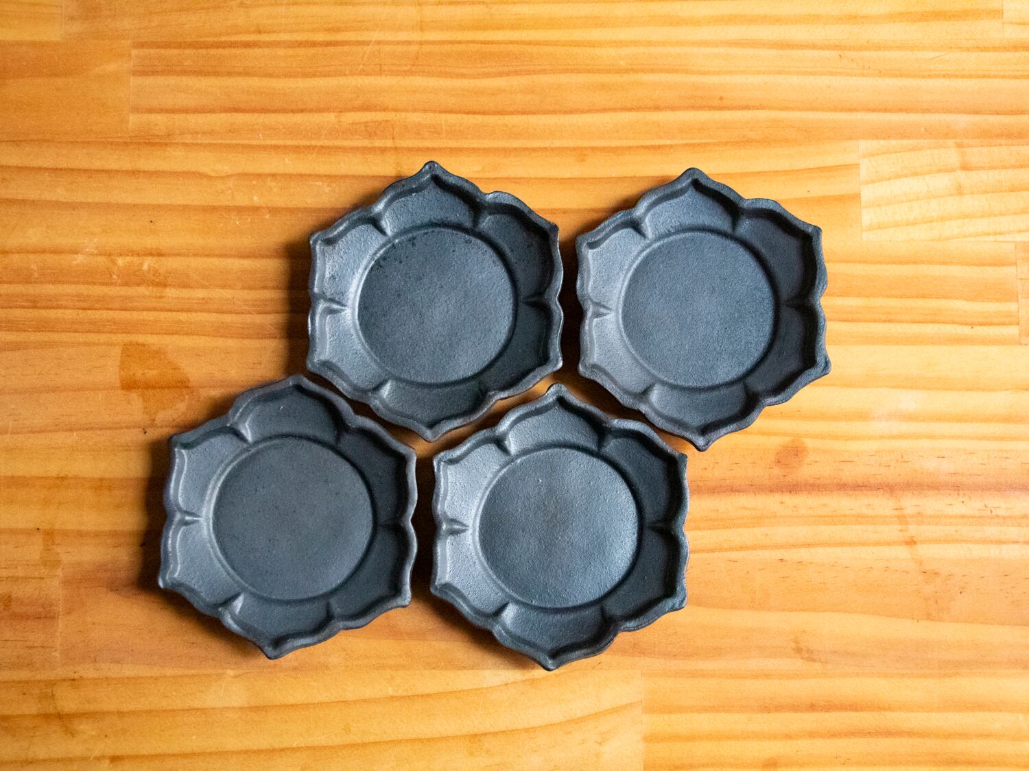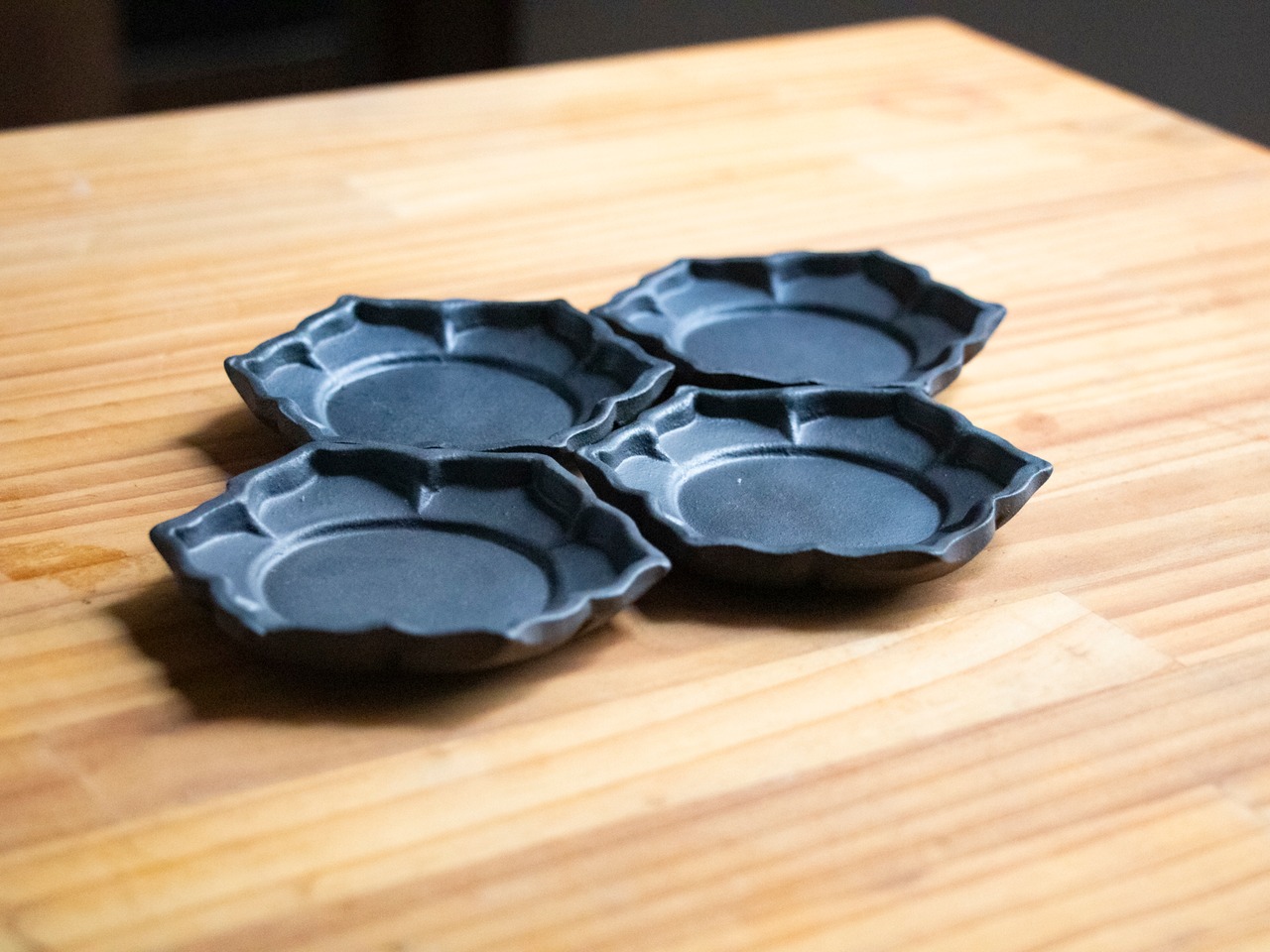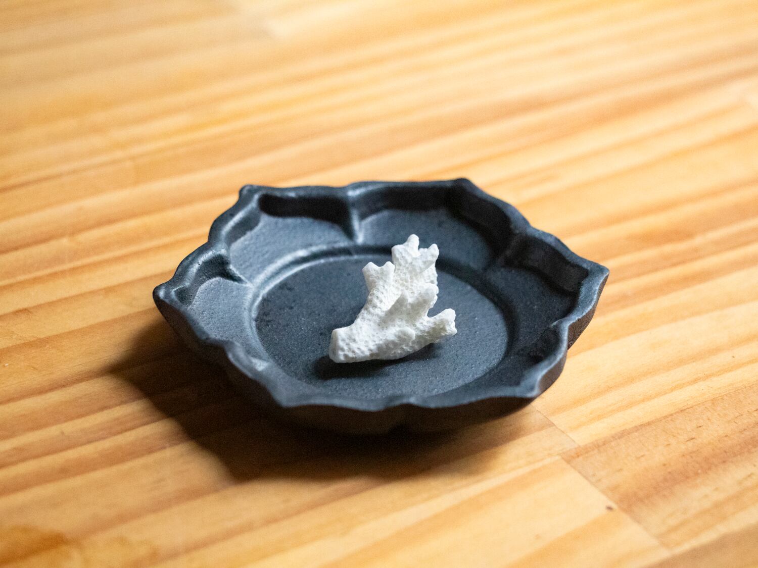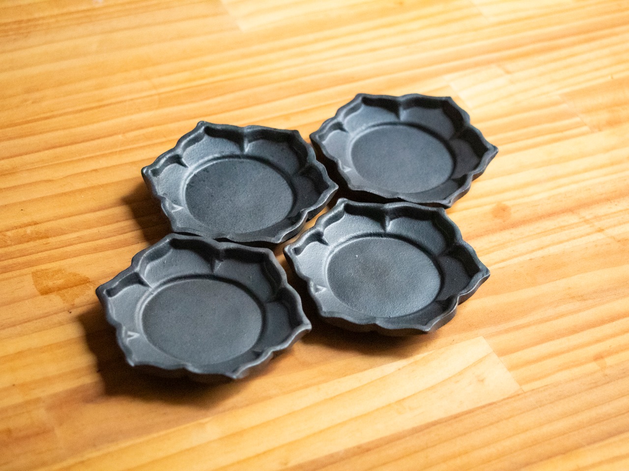 (A)Blackwareシリーズの花小皿1ですね。6枚の花弁を持つ花の形をした小皿で、小皿の原型の中で一番最初に作ったものになります。アンティークのお皿の形とかを意識していますね。