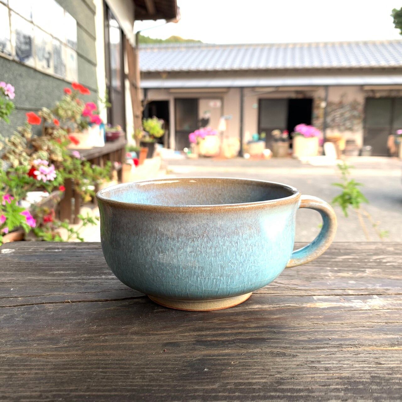 持ち手のついたスープカップです。作りが大きめなので、野菜がごろごろ入ったスープなどでもたっぷり入れる事ができます。