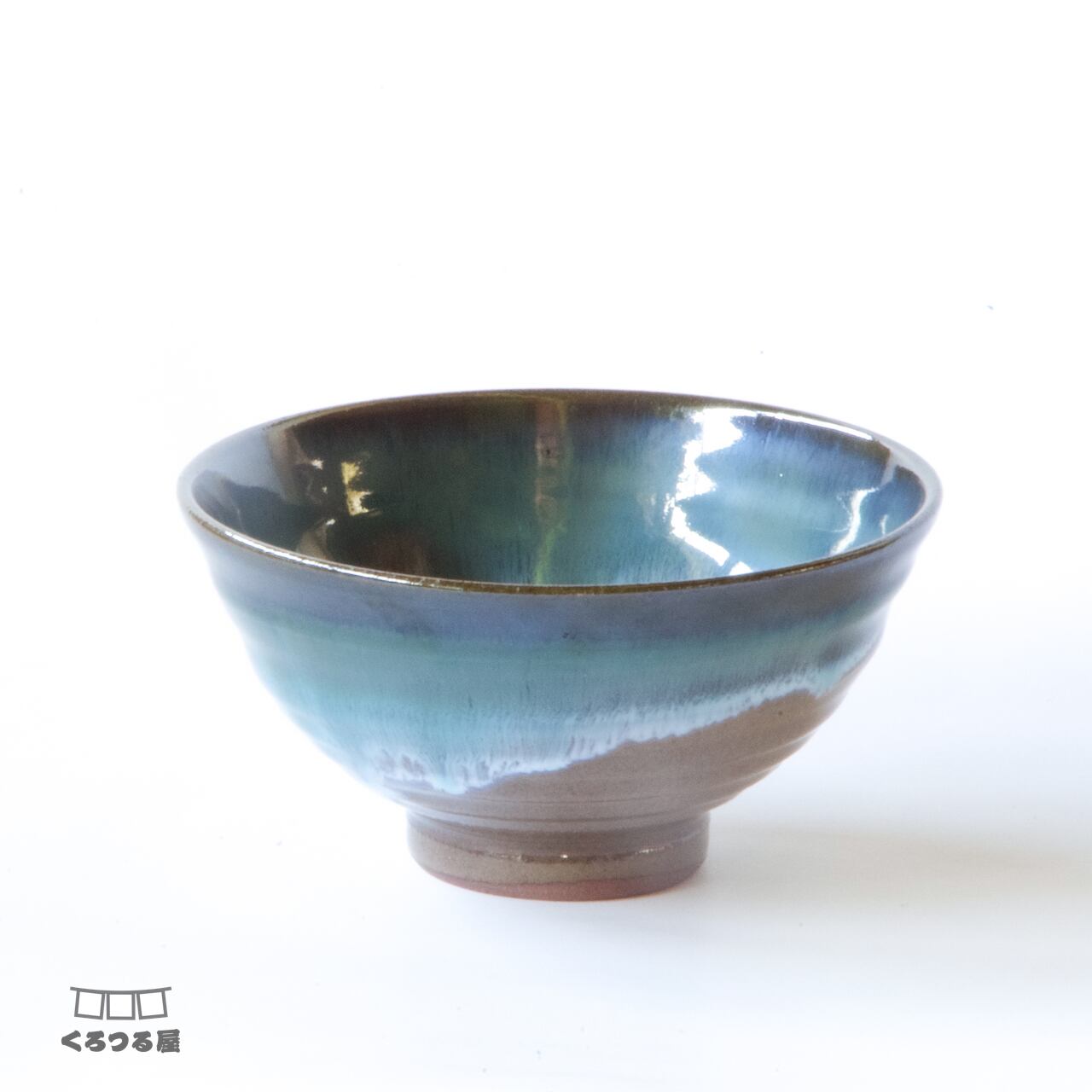 上野焼 伝統の釉薬 緑青流し(ろくしょうながし)のご飯茶碗です。