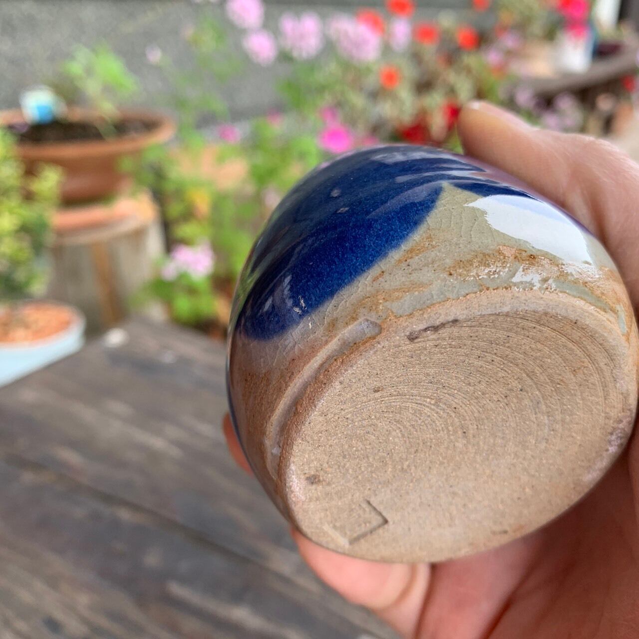 濃い青が印象的な花瓶です。