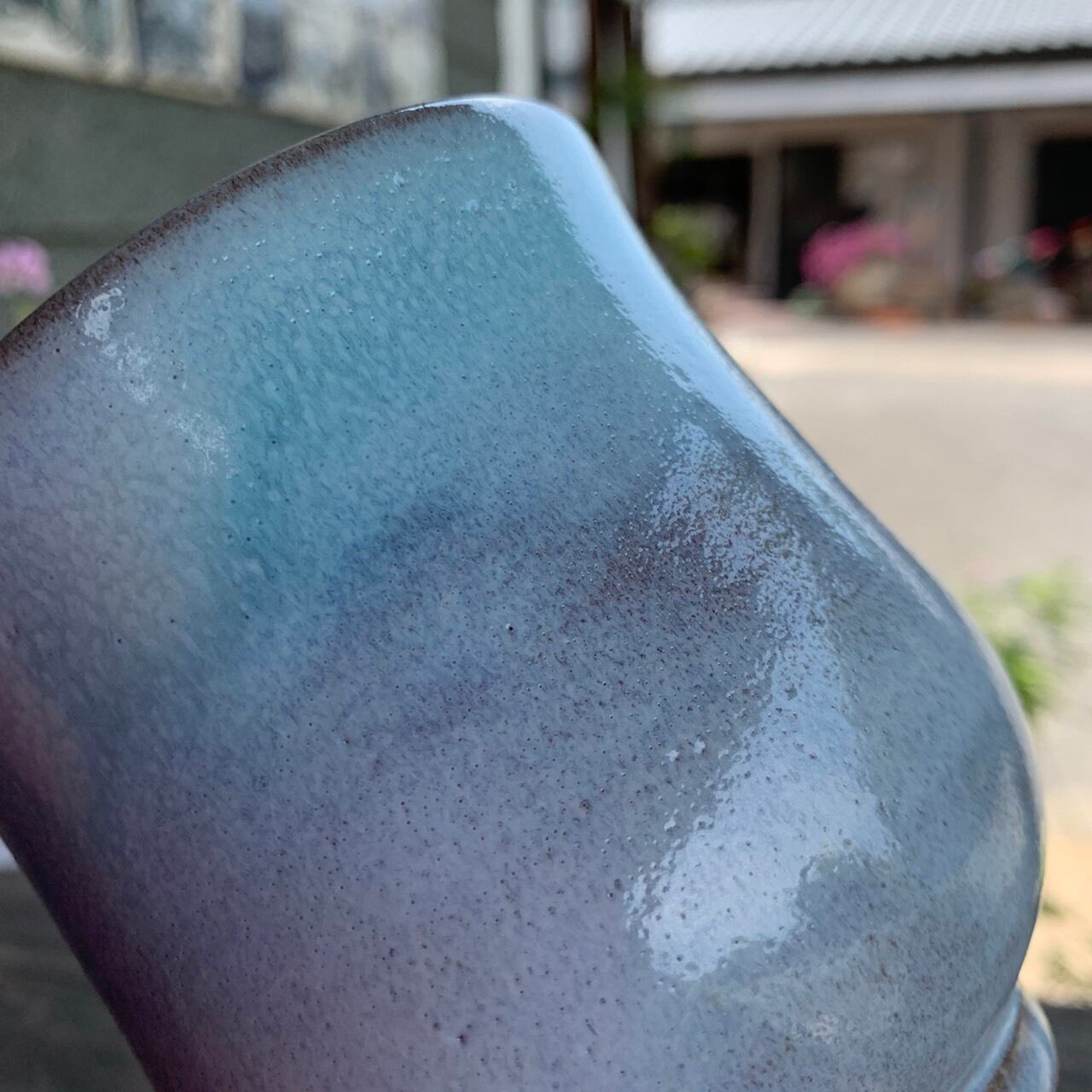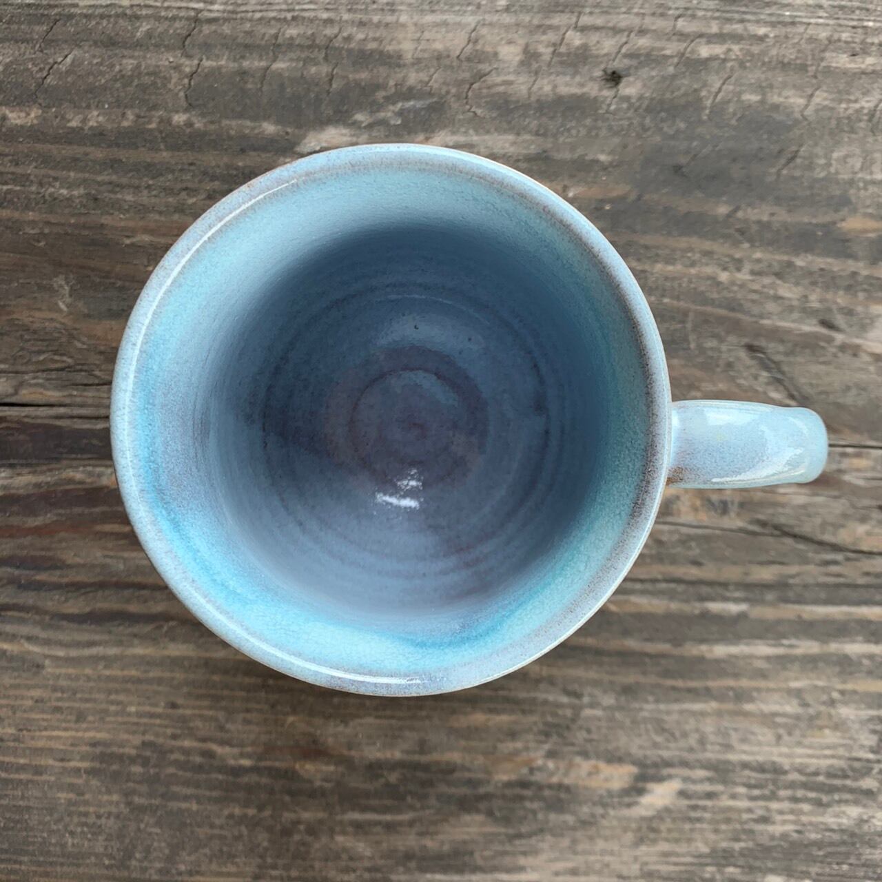 爽やかな水色のマグカップです。安定してたっぷり入る形で、温かい飲み物をゆっくり楽しむのに良いと思います。