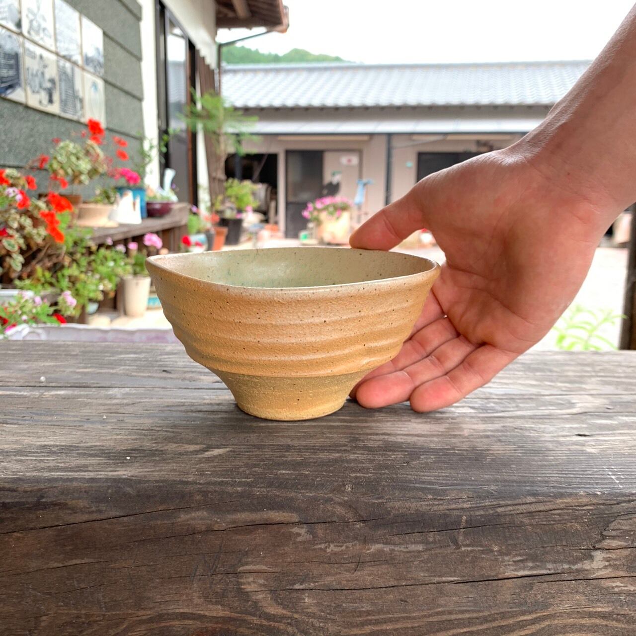 この茶碗は、ろくろで引いた勢いを そのまま活かした大ぶりな作りで、男性向けなイメージの器です。