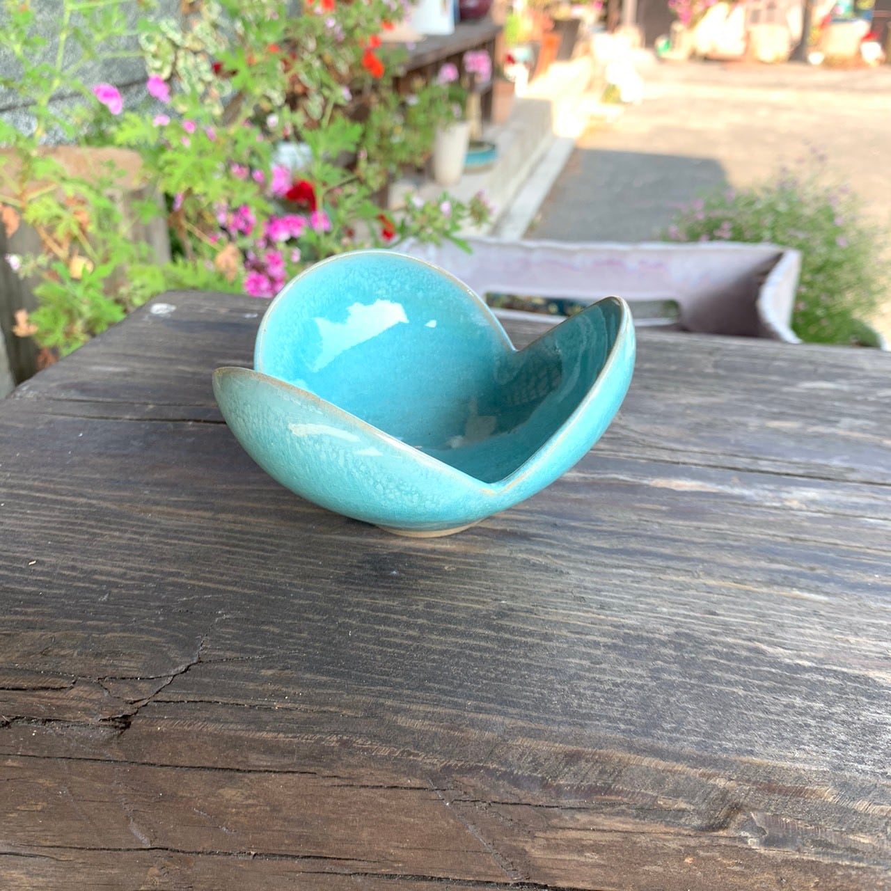 色は庚申窯の爽やかなブルーの釉薬です。