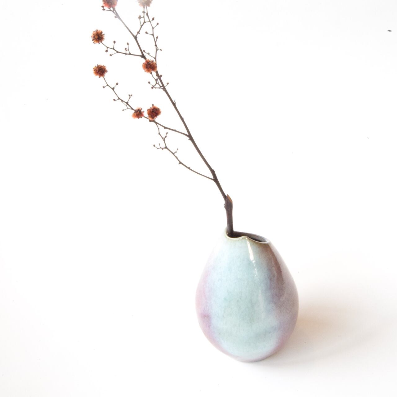 口の形が少し変わった花瓶です。花が一本だけでも数本でも使えるようにこの口の形になっています。