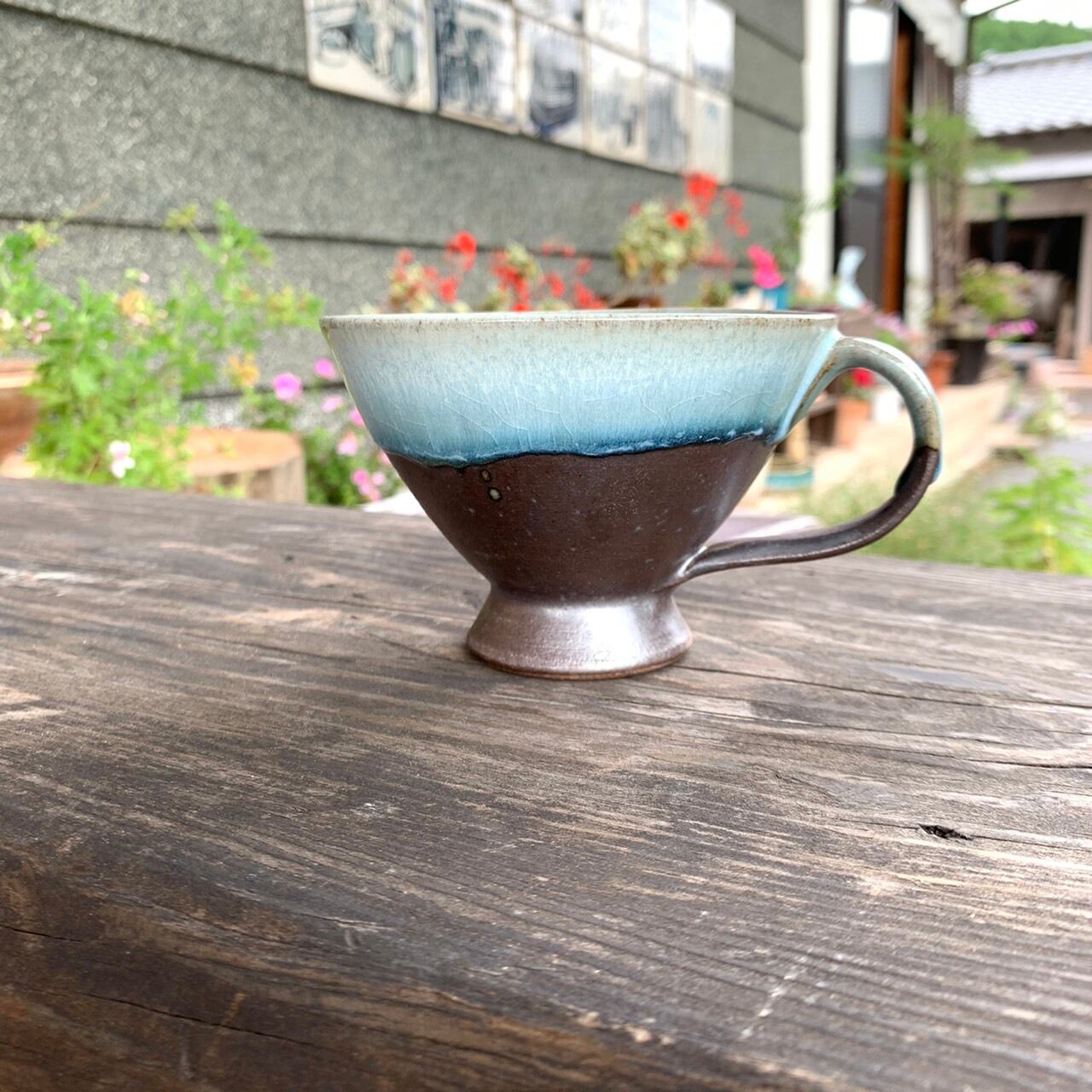 このカップはもともと鍋用という事で作られたのですが、逆三角形で口が広く、薄く軽い作りで、高台も高さがあるので、「熱い紅茶が早く冷えるように」というティーカップとしての要件を満たしておりまして、ティーカップでもいけますよね、鍋用よりもティーカップの方が響きいいし、という事でティーカップとして くろつる屋にも並べさせていただきました。