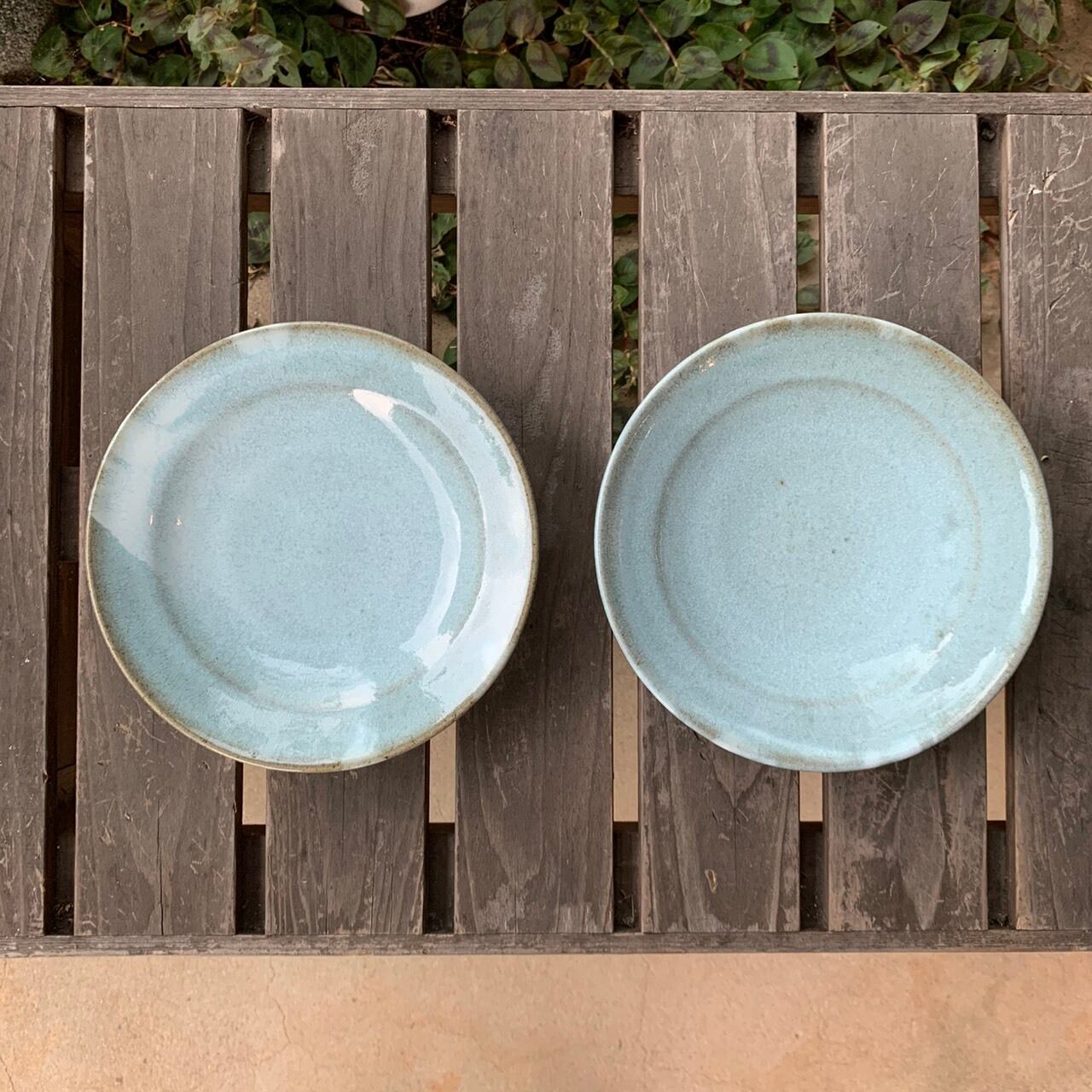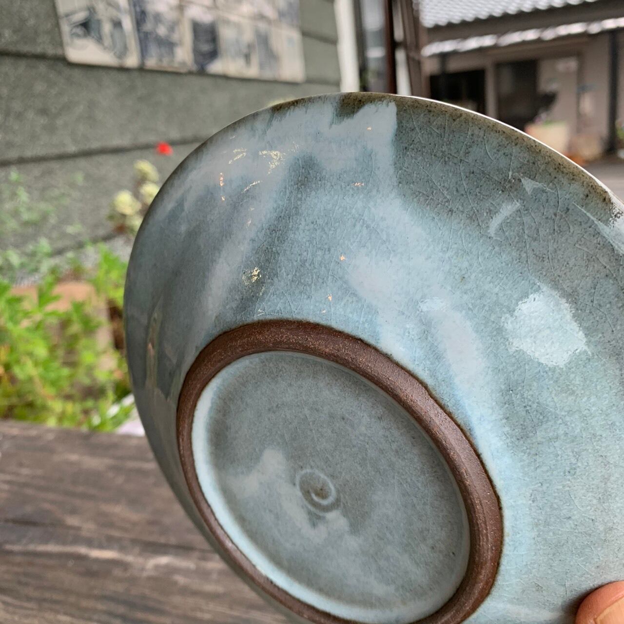 色はワラ白釉を還元焼成したものです。少し青みがかっていますね。