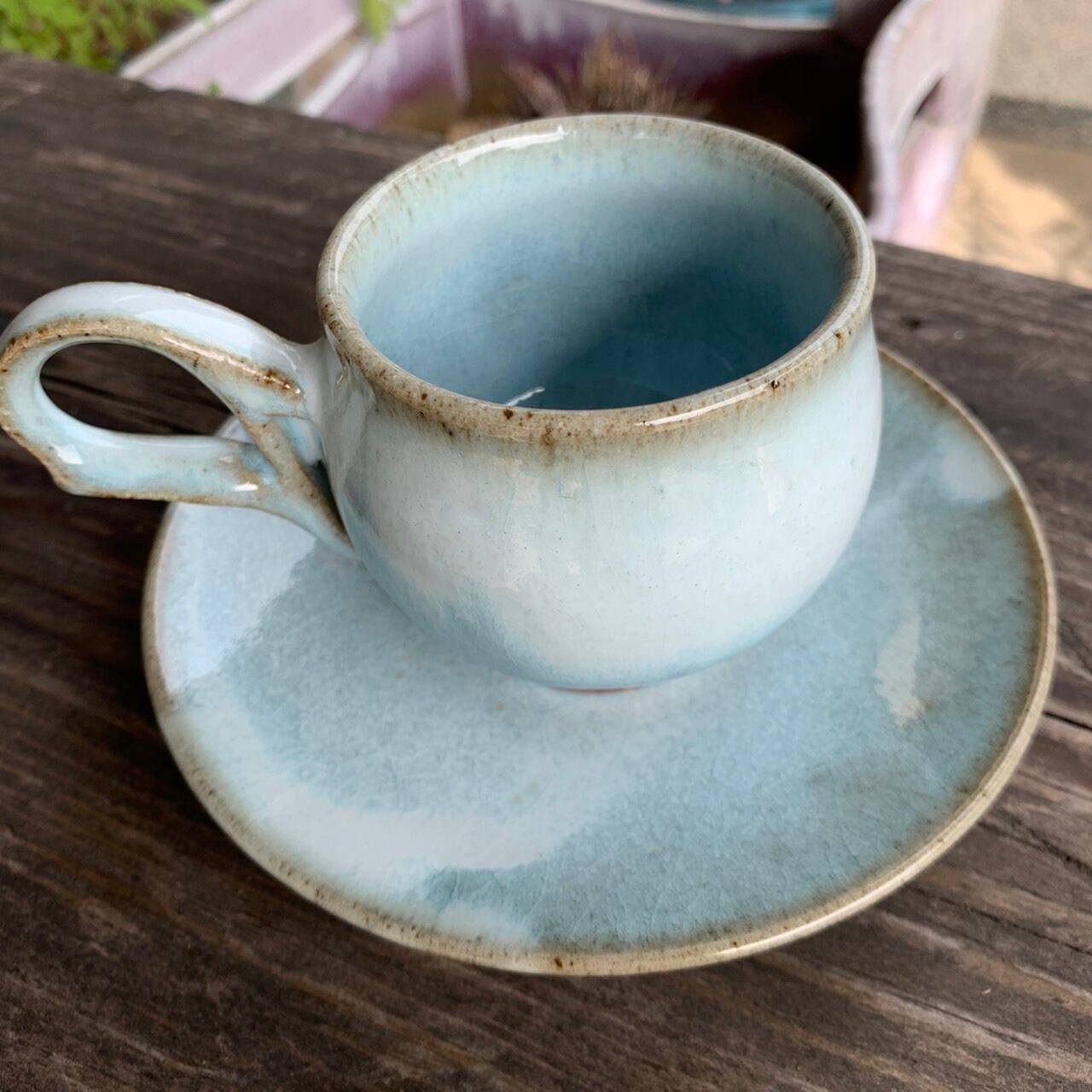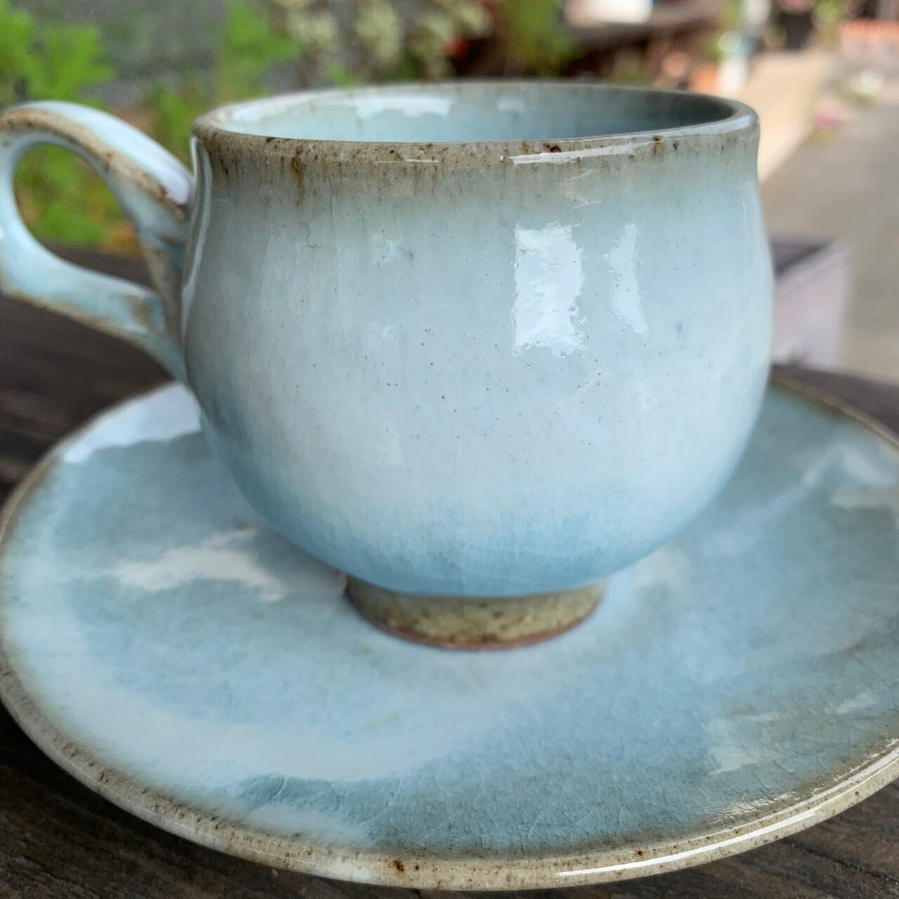 取手が特徴的なコーヒーカップ&ソーサーです。