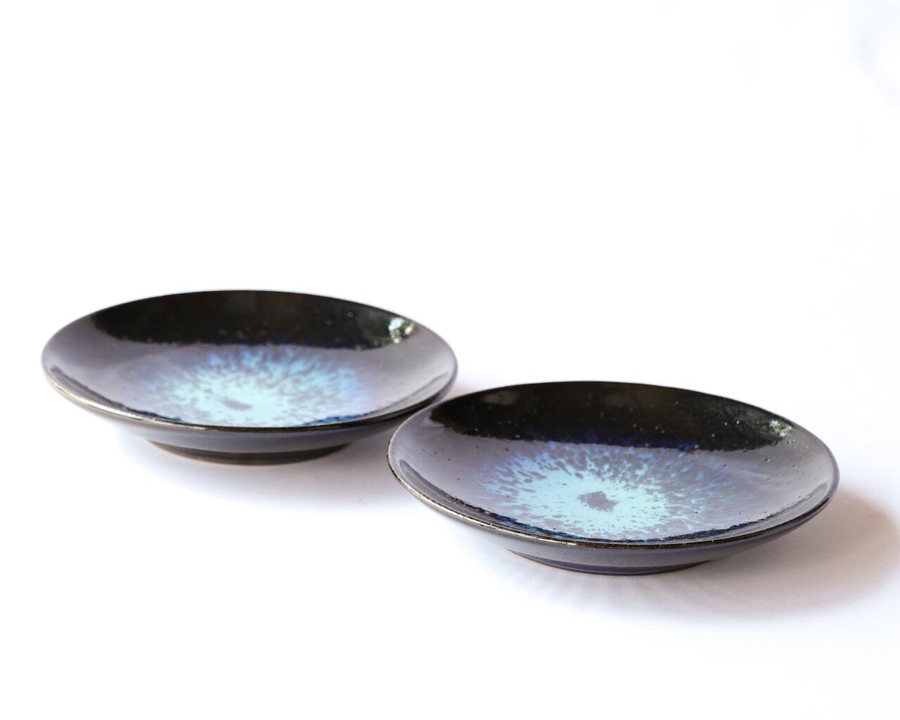 黒と青の器ですね。惑星小皿よりも少し大きいお皿です。
