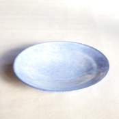 お皿の形はシンプルなものですね。直径が26cmくらいなので少し大きめのお皿って感じでしょうか。たぶんいろいろ使いやすいサイズだと思います。高台を広く作っているのでナイフやフォークでの食事もしやすいです。元々レストラン向けのものでしたので。