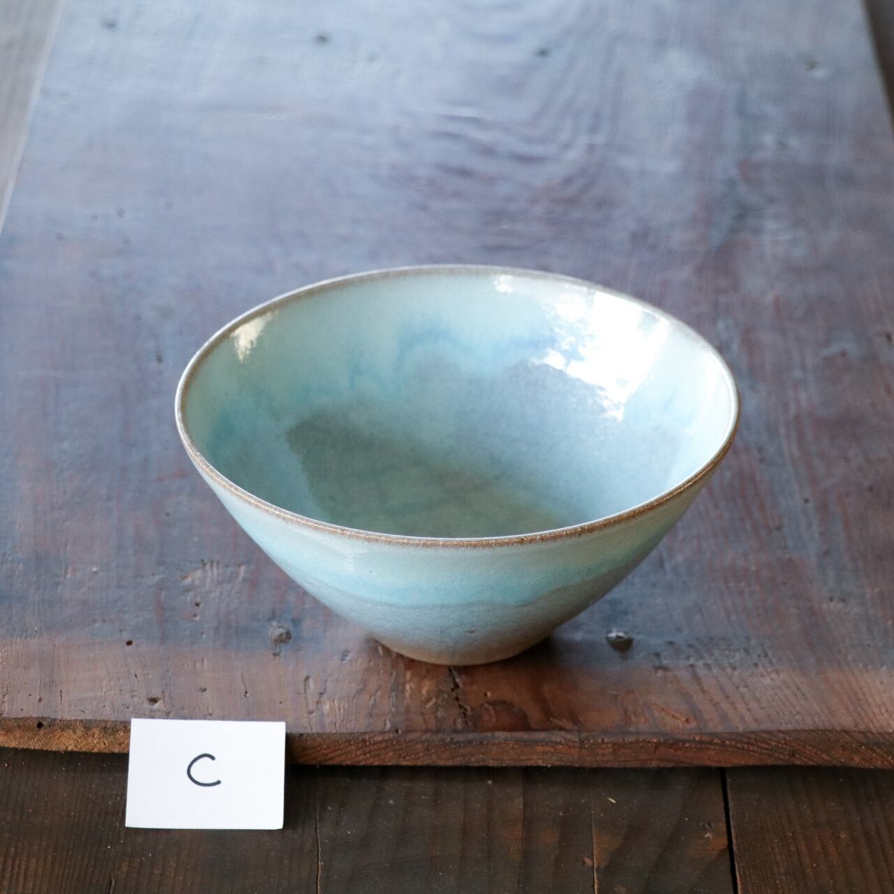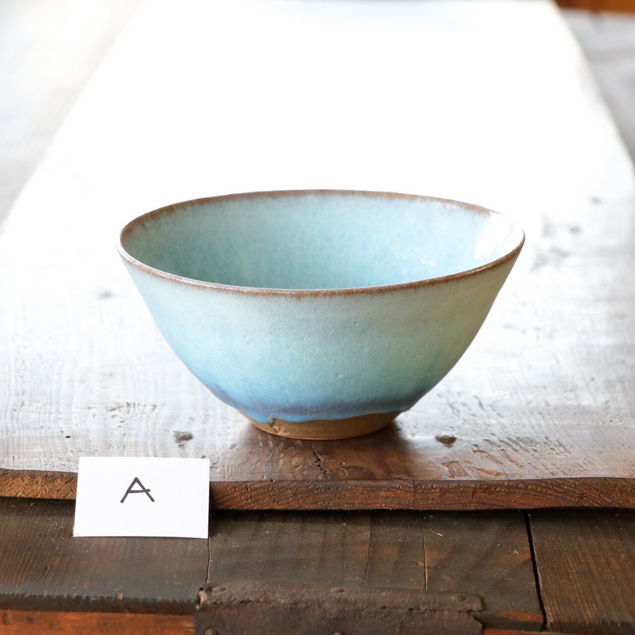 こちらは水縹(みはなだ)の丼です。よく「みなはだ」と間違われるんですけど「みはなだ」です。縹色(はなだいろ)っていうのが元々あって、縹色はジーンズみたいな青なんですけど、それの明るい色だから水縹と言います。