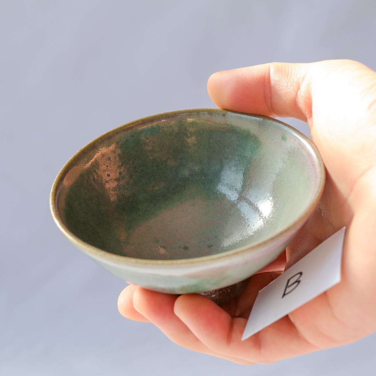 例えばBの茶碗は色が部分的に違いますけど、これは窯の中の火の当たり方とか、空気の通り方の違いで AとBは同じ釉薬でもそれぞれ違う色の出方をしています。それと祖父のサイズ感覚で作られたものなので 今のごはん茶碗としては かなり小さいんですけど、小ぶりの茶碗としていいのではないかと思います。