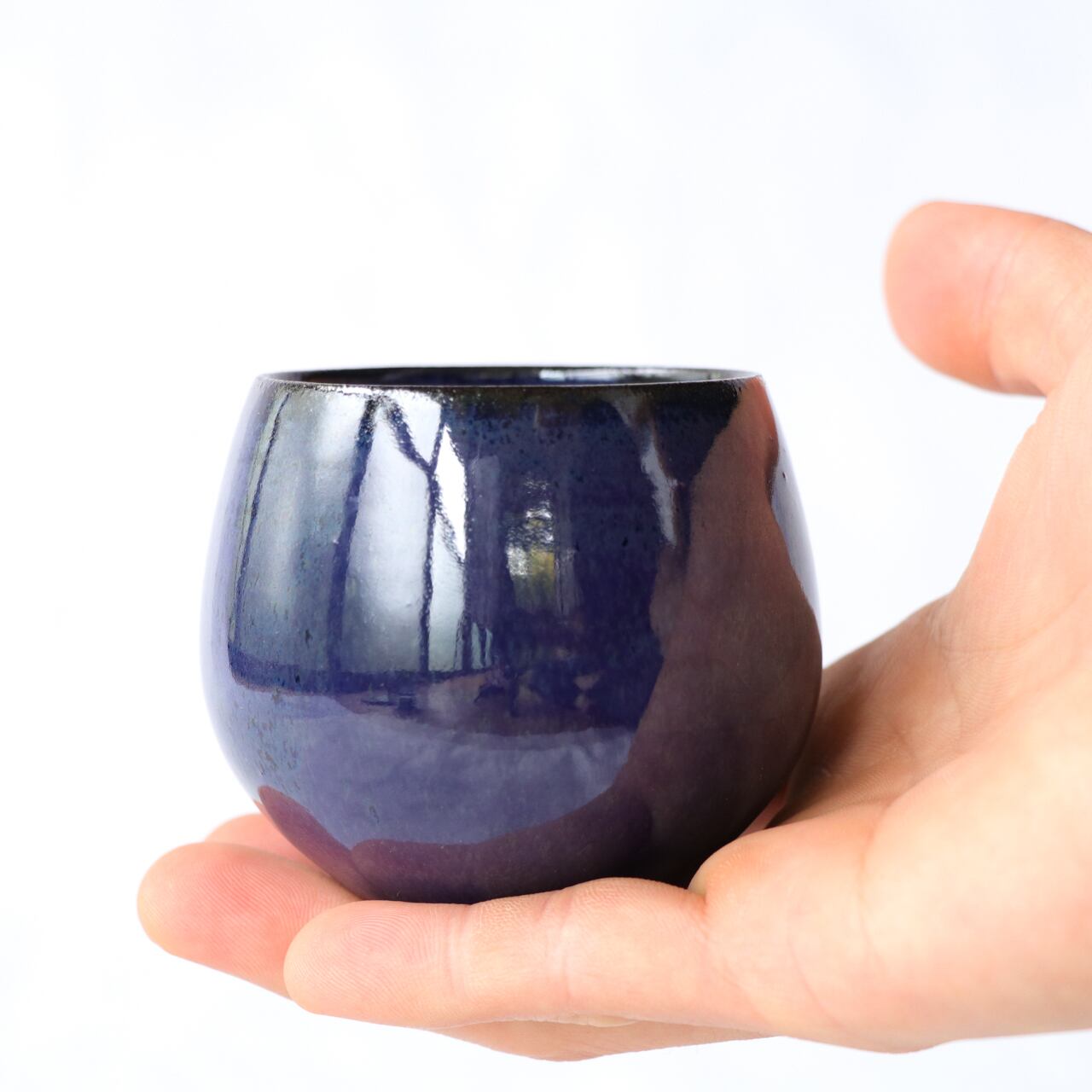 エスプレッソを飲む用として作ったので、香りが滞留する形と、冷めにくいように、また持っても熱くないように胴回りは少し厚めの作りに、味わいがきりっと感じられるよう口を薄めに仕上げています。コーヒーだけじゃなくてお酒に使ってくださる方も結構いるみたいです。