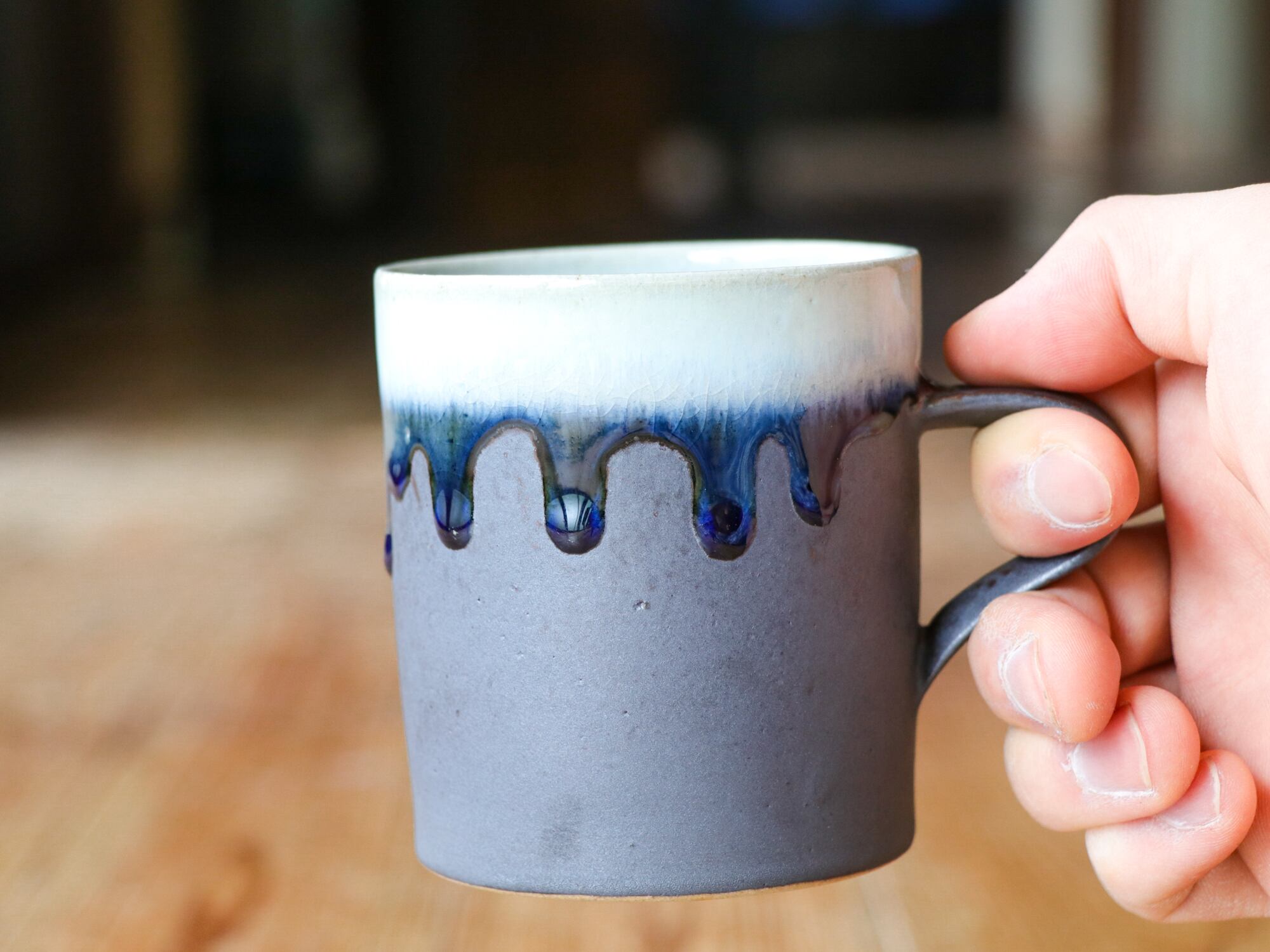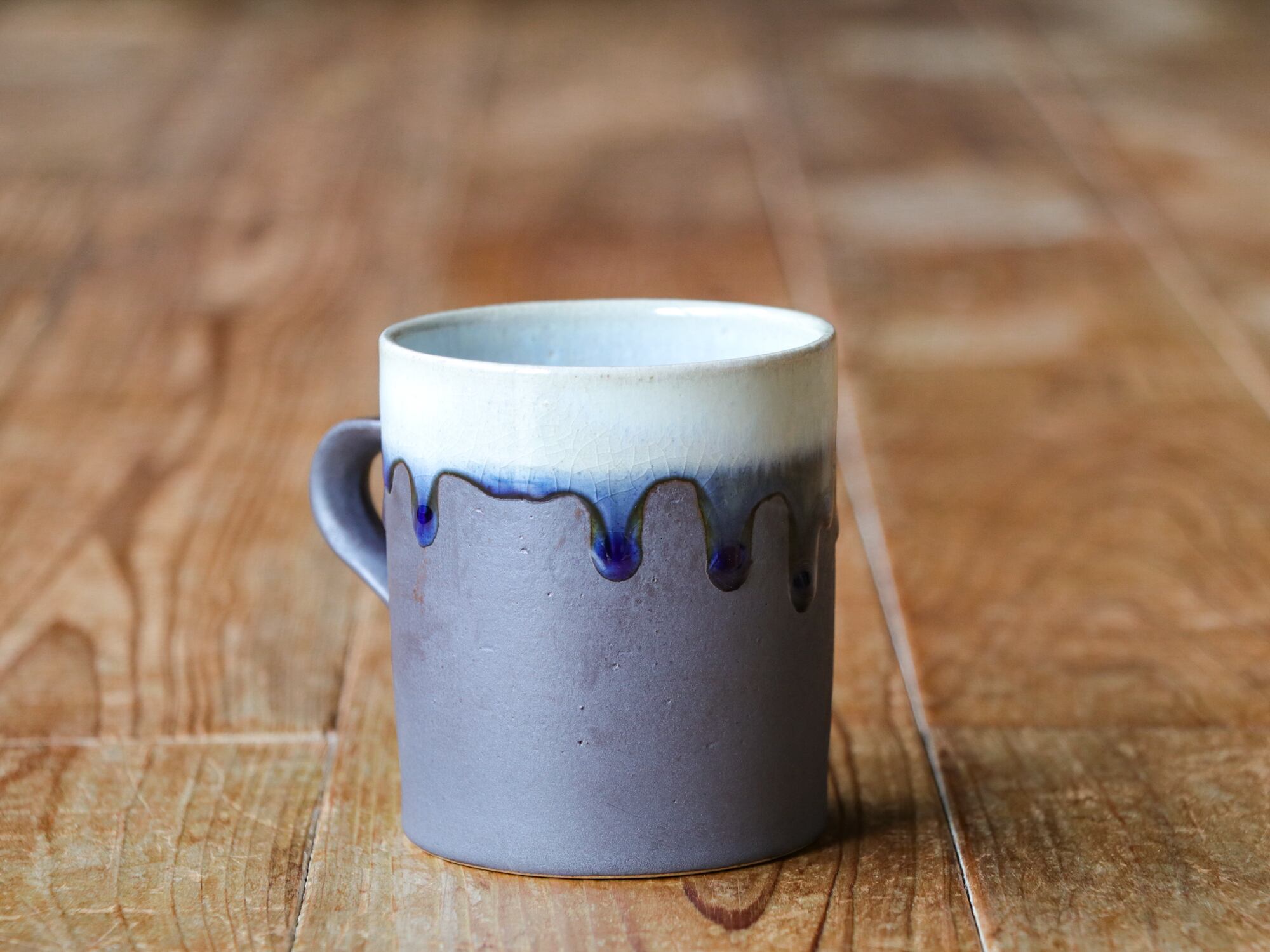 このマグカップでは 朝鮮唐津の上から流す釉薬の流れが美しくなるよう焼いてみました。いい感じです。